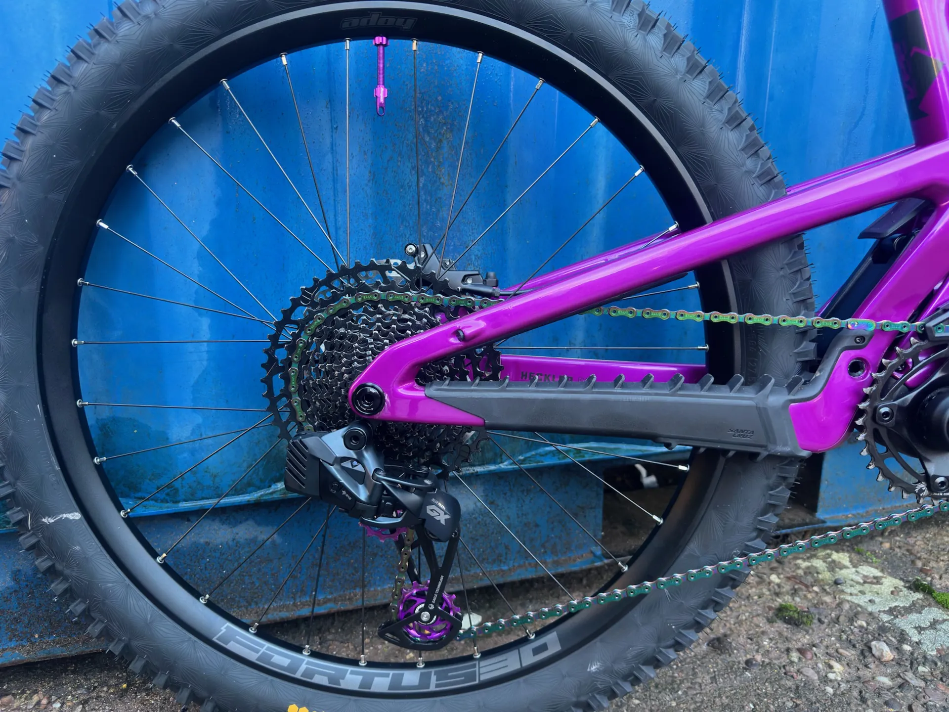 Question(s) answered about Santa Cruz Heckler SL Custom Purple Large - Very Little Use