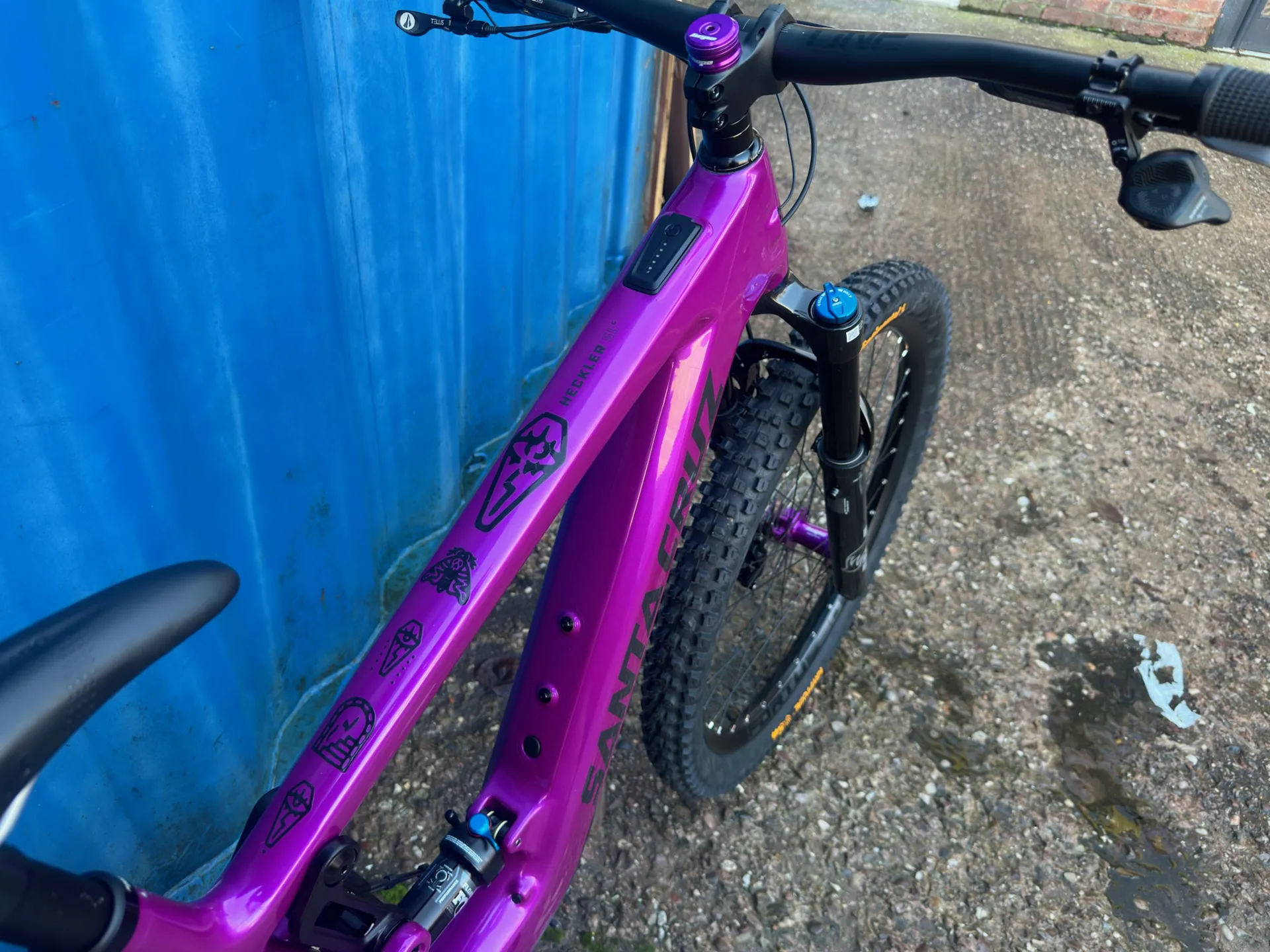 Question(s) asked regarding Santa Cruz Heckler SL Custom Purple Large - Very Little Use