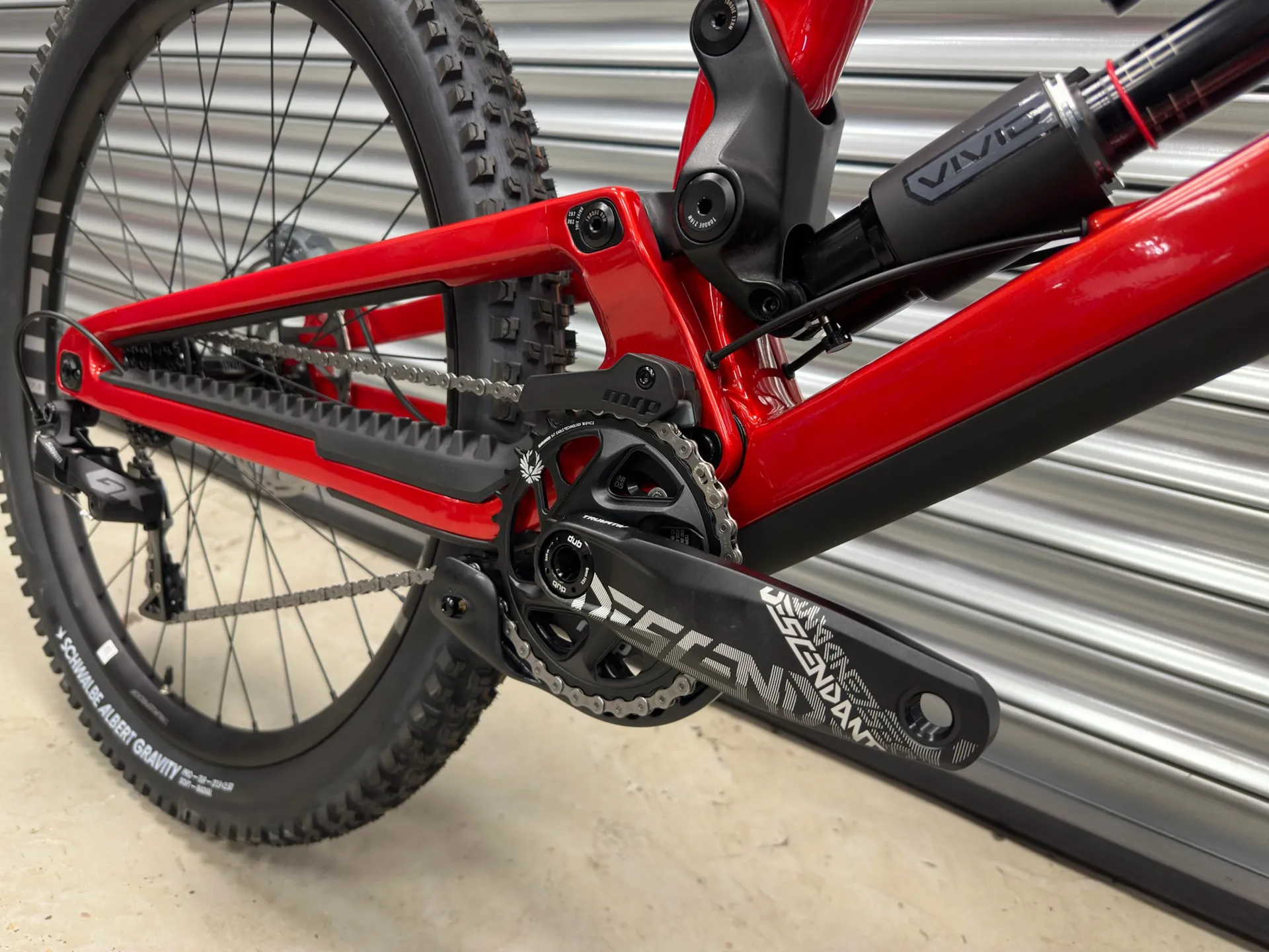 - Shock - RockShox Vivid Base Air, 250X75mm, Bearing End, Custom Tuned with 1 Token, Rebound 25, Compression 30, Externally Adjustable Bottom Out