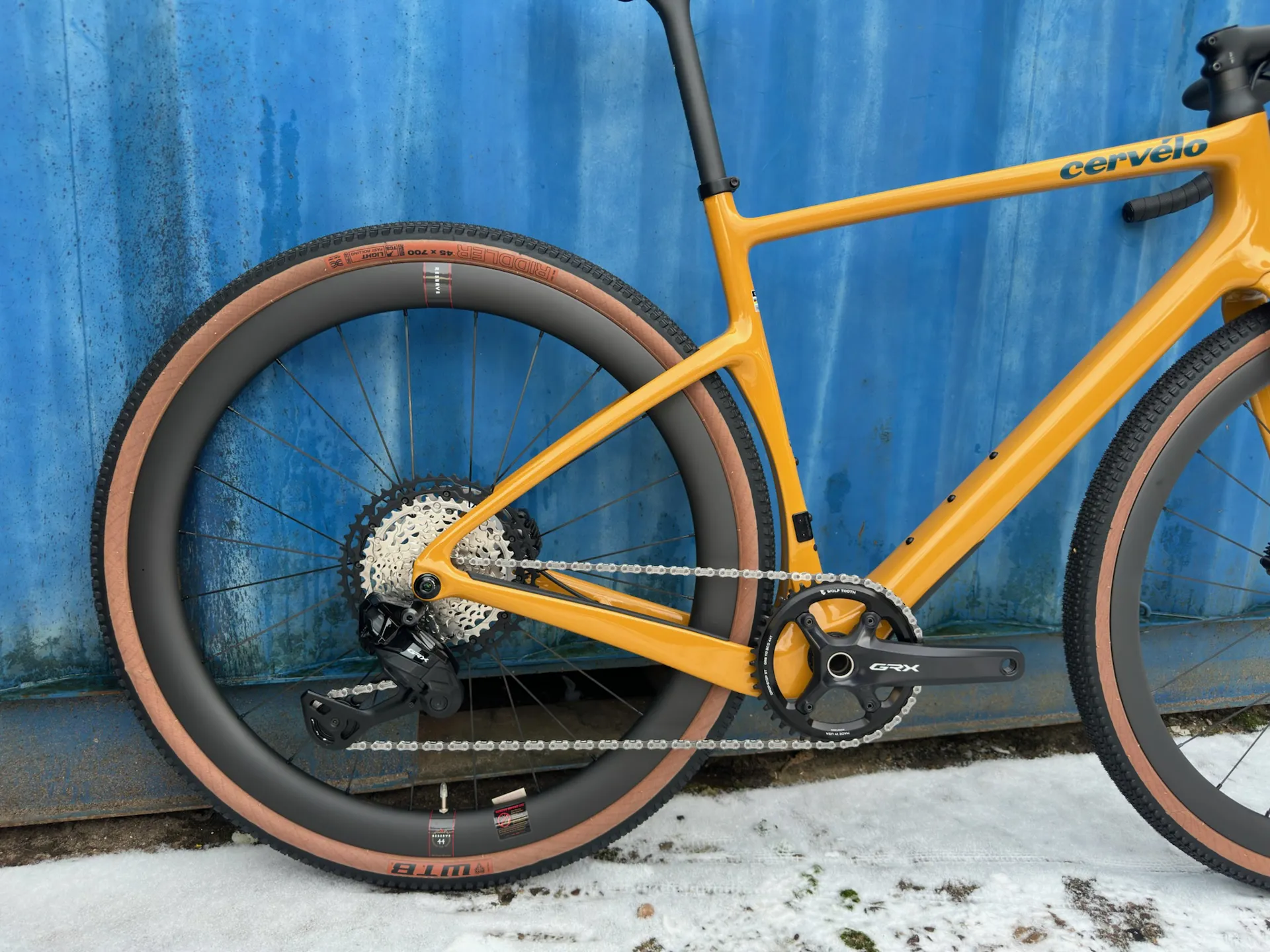 Reserve 40|44 carbon wheels paired with DT Swiss 370 hubs, wrapped in WTB Vulpine 700x45c tyres for a fast, stable ride