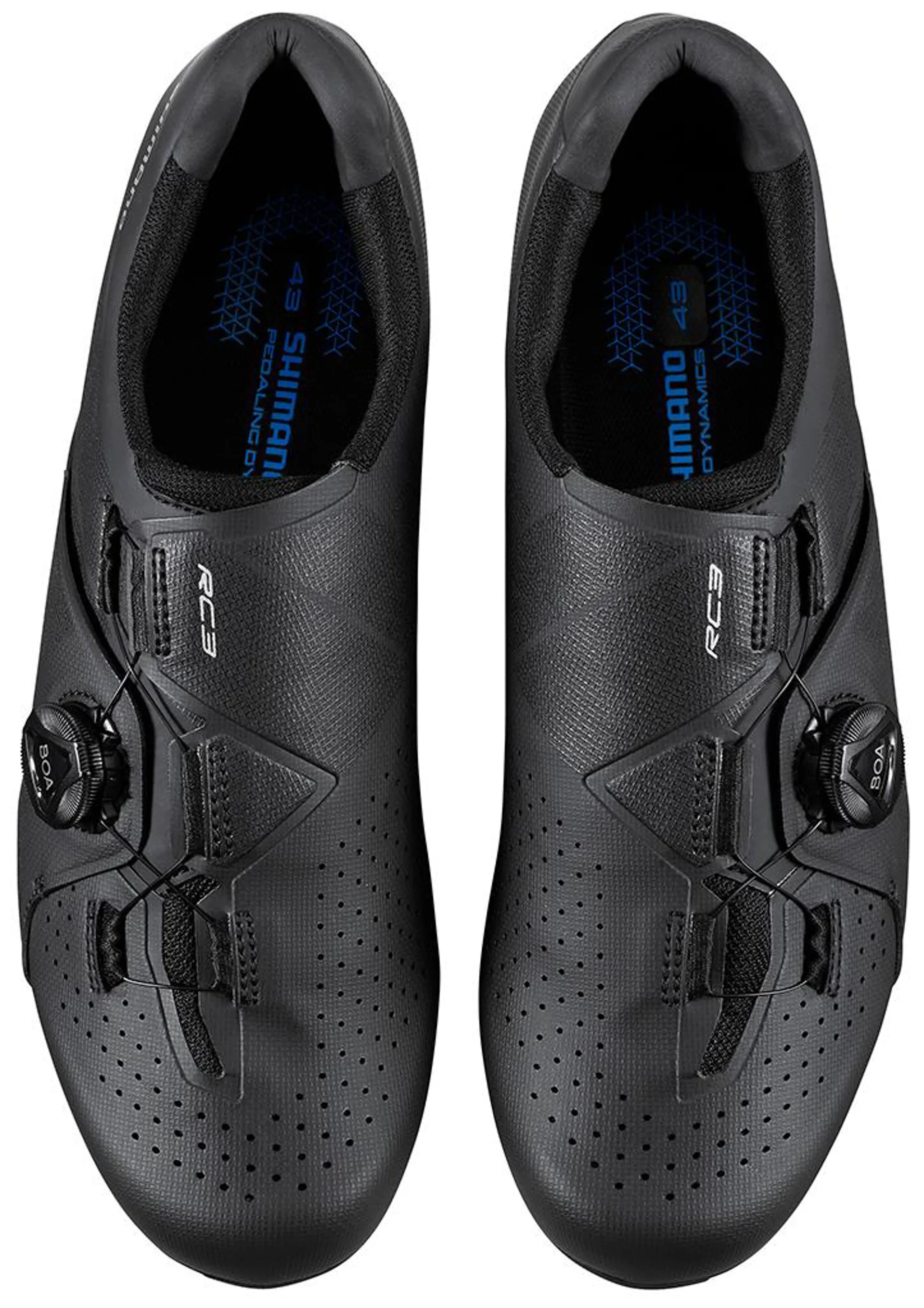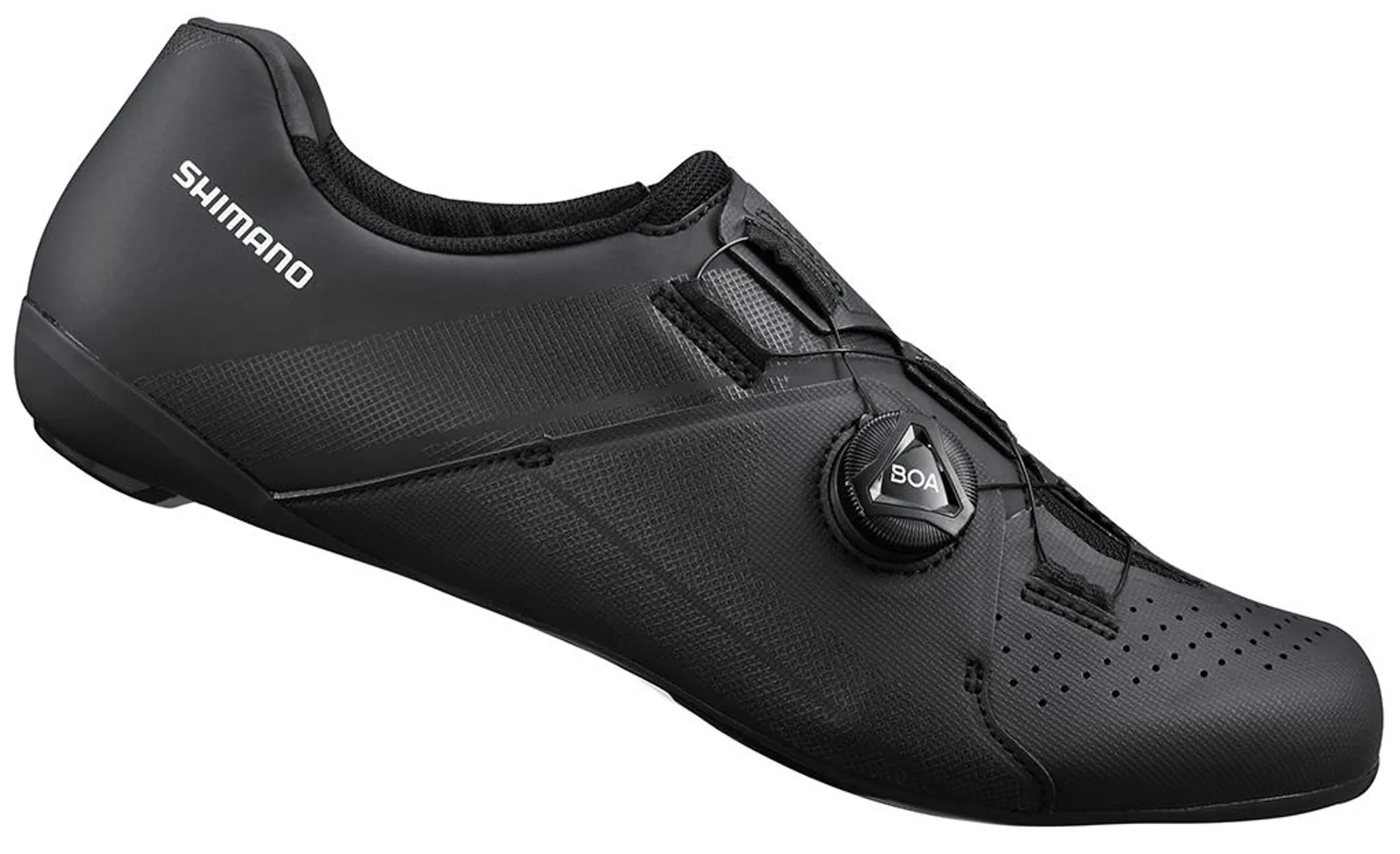 The upper structure of the Shimano RC300 is made of perforated synthetic leather, which provides a great fit and breathability. Thanks to the perforations, the chance of overheated feet is reduced significantly. The BOA® L6 dial closure with the asymmetrically positioned middle flap allows for quick and precise adjustment of this road bike shoe. With a simple turn of the dial you can tighten it just a little bit. The BOA closure can be used safely and responsibly even while you’re cycling.